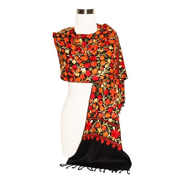 CASHMERE BLEND ANTIQUE DESIGN HAND EMBROIDERED SCARVE